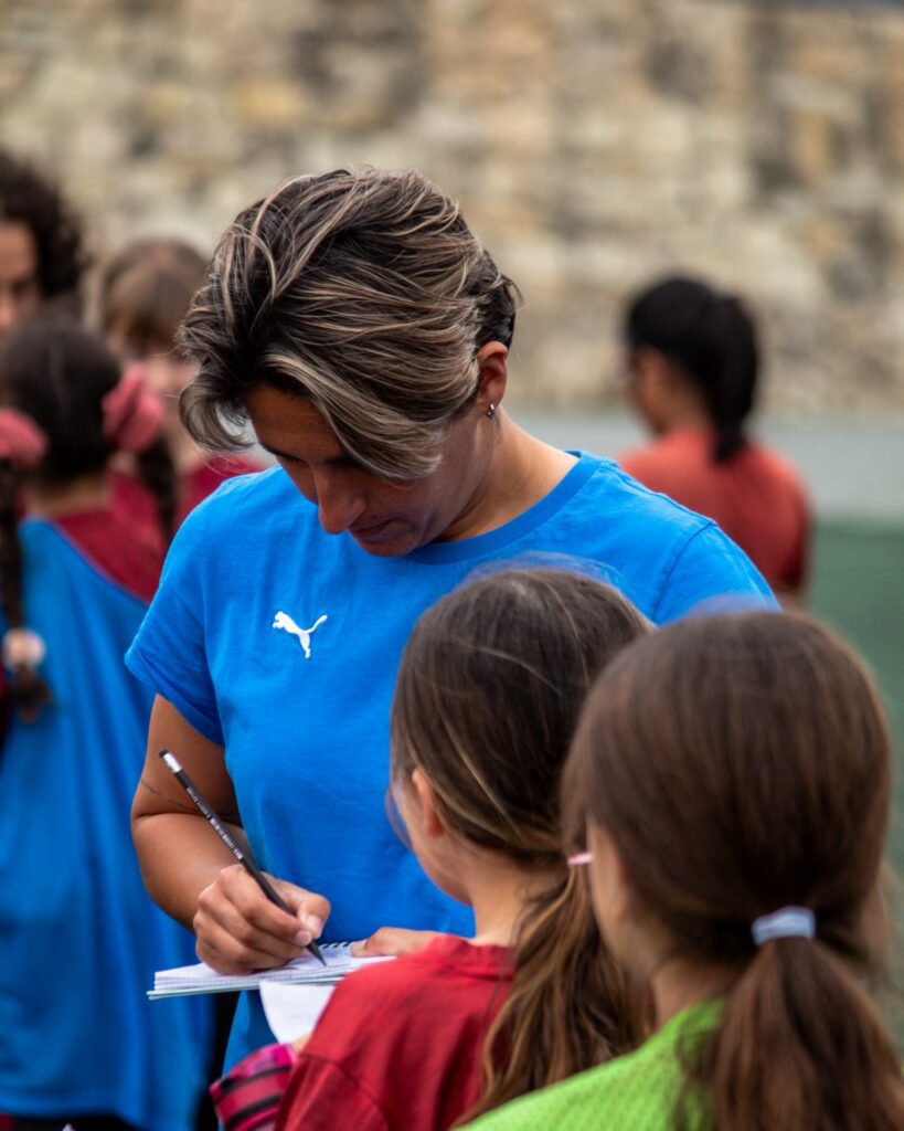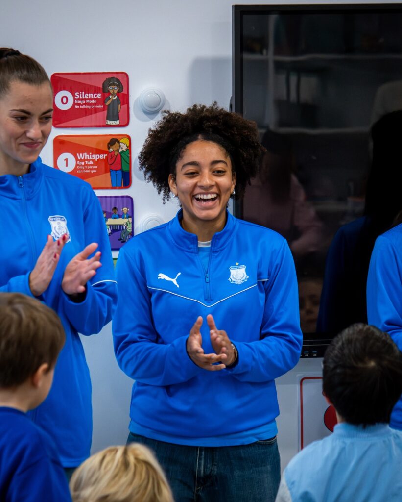 Seeing a professional female footballer in person can be a “lightbulb moment” for a young girl. It transforms a distant dream into a tangible reality. Our visits focus on building confidence, promoting a healthy lifestyle, and raising overall awareness of the opportunities available within the football world – whether as a player, coach, or leader.