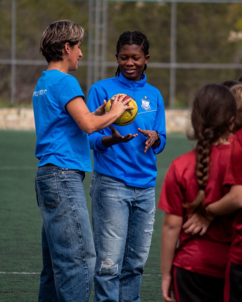 At Apollon Ladies, we believe the beautiful game belongs to everyone. Our commitment to the sport extends far beyond the stadium walls; it lives in the classrooms and playgrounds of our community. Through our ongoing school visit initiative, we are hitting the ground running to shape a future where every child – regardless of gender – has a fair shot at the goal.